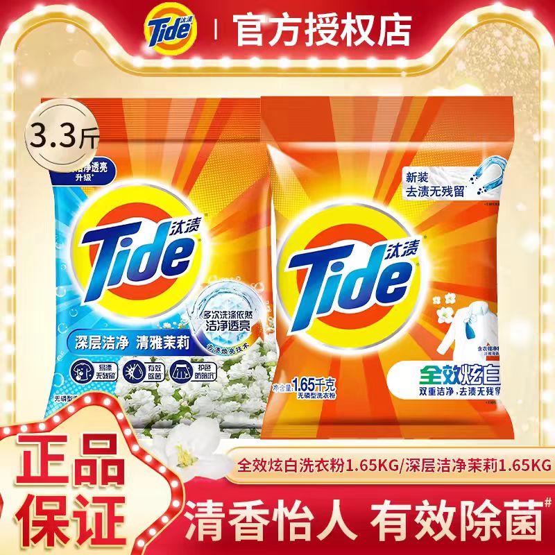 汰渍洗衣粉深层洁净有效除菌全效炫白去渍手洗机洗家用实惠装正品