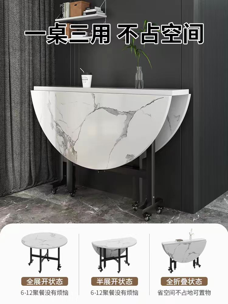 何佳功圆桌实木家用小户型可折叠大圆餐桌10人饭桌简约餐厅圆形吃饭桌子 1.0米【白理石纹】加厚加粗