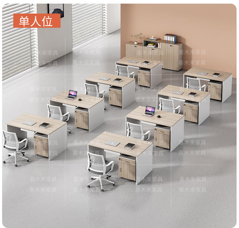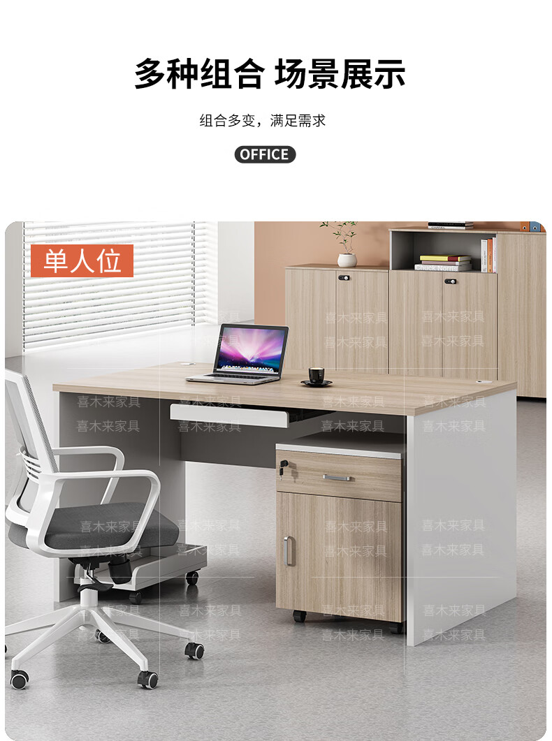 喜木来职员办公桌椅组合简约现代办公桌单人位家具员工桌 配套键盘托