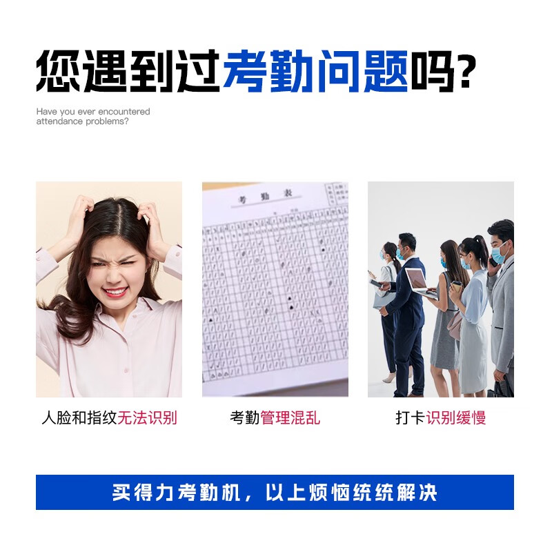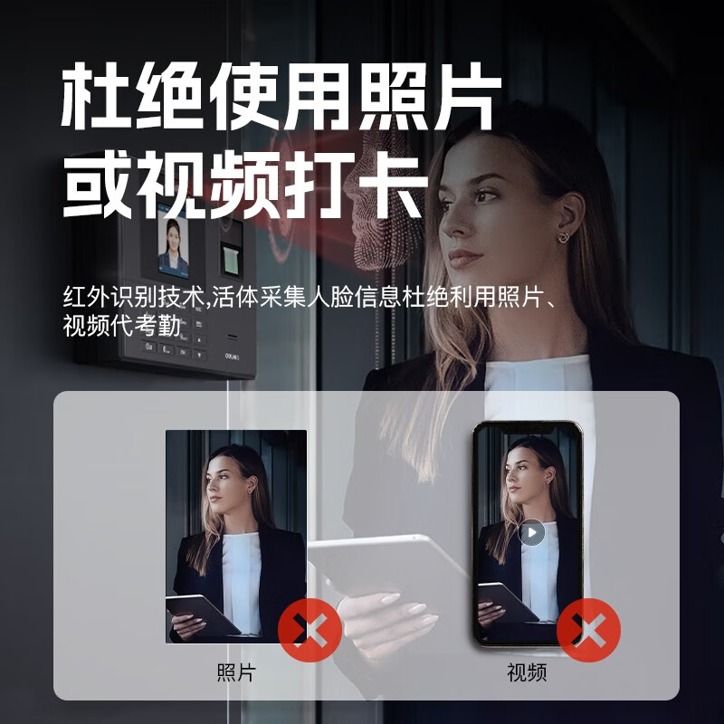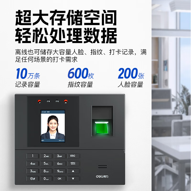 得力打卡考勤机人脸 指纹识别打卡机面部识别公司企业员工上下班签到机语音播报打卡考勤手机智能考勤 单机款人脸+指纹【无需网络 自动生成报表】
