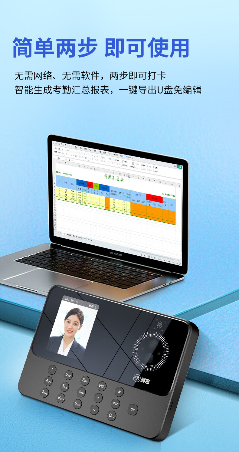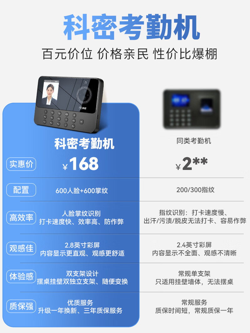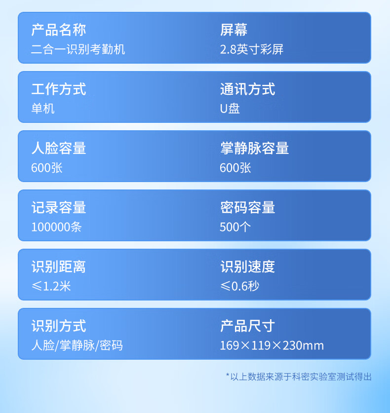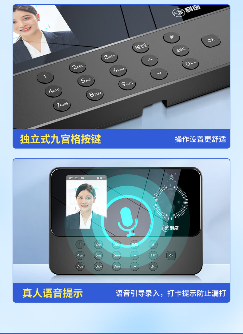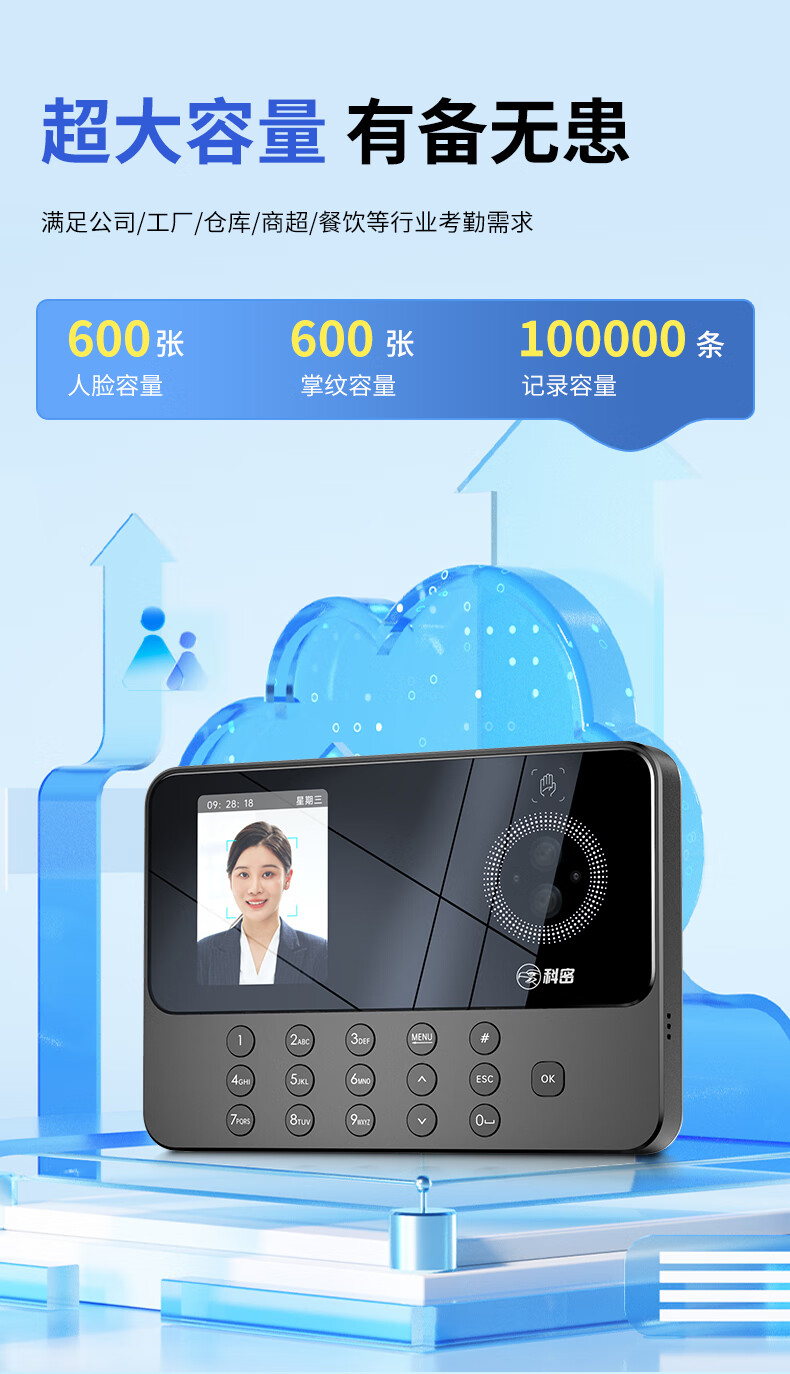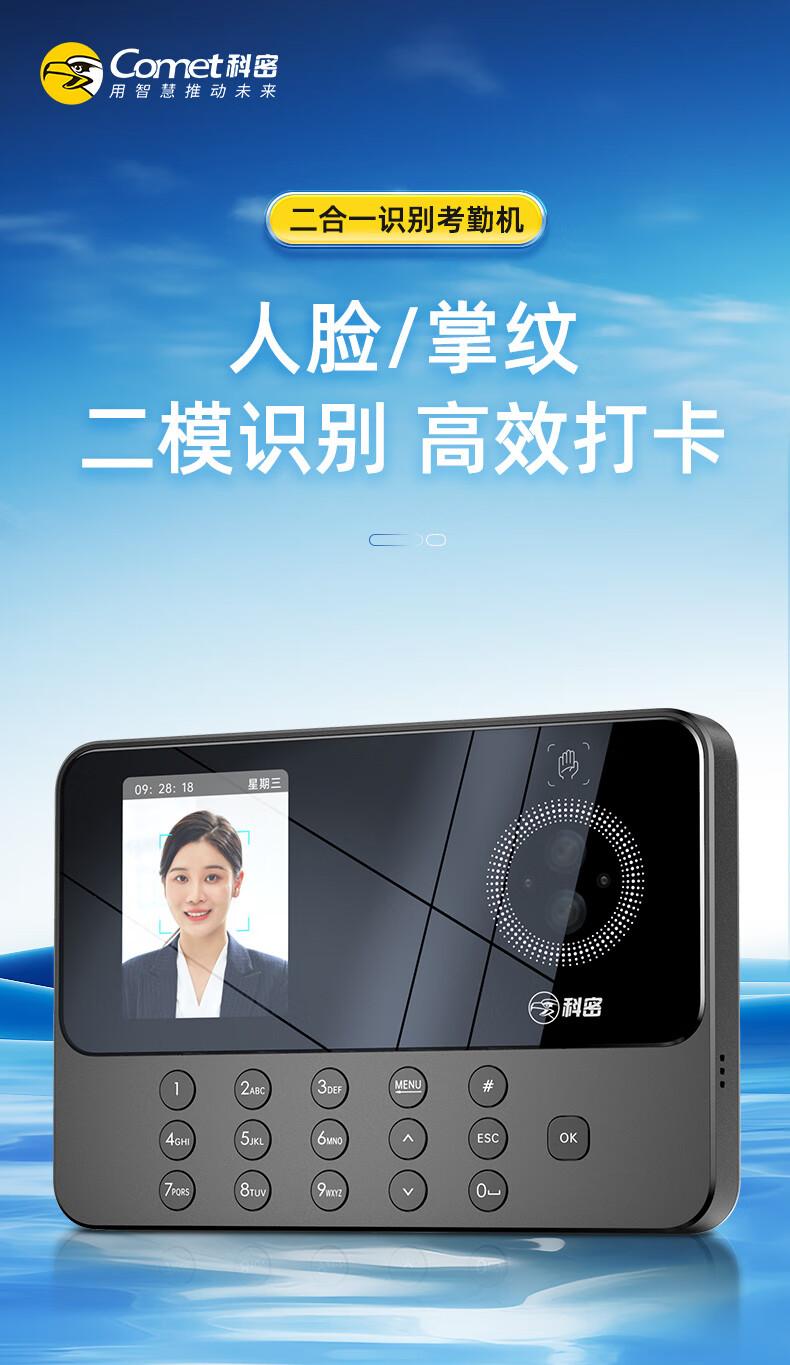 科密(comet)考勤机 打卡机人脸+掌纹识别考勤机 免网络免软件 设置简单 自动生成报表PV10S