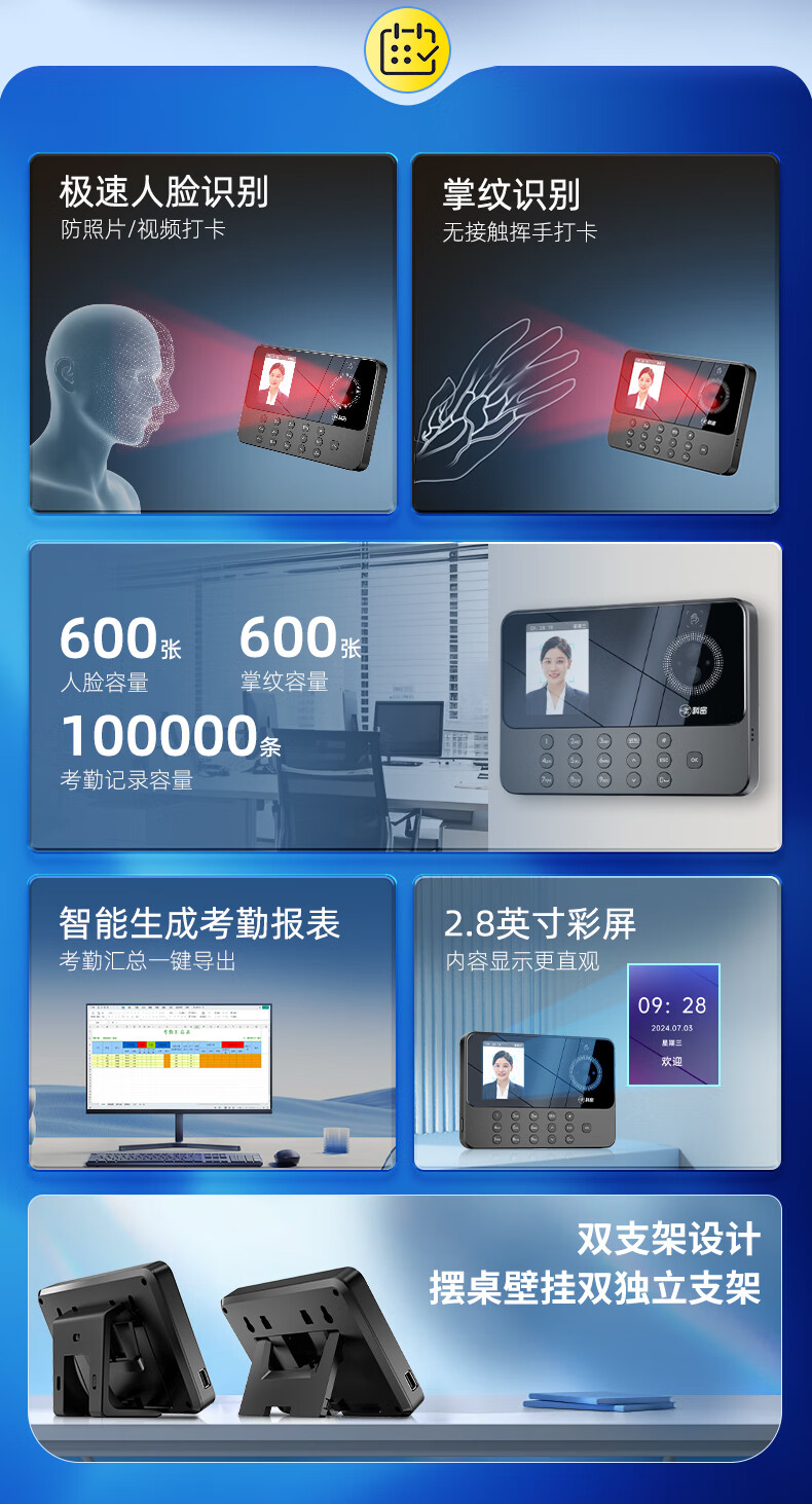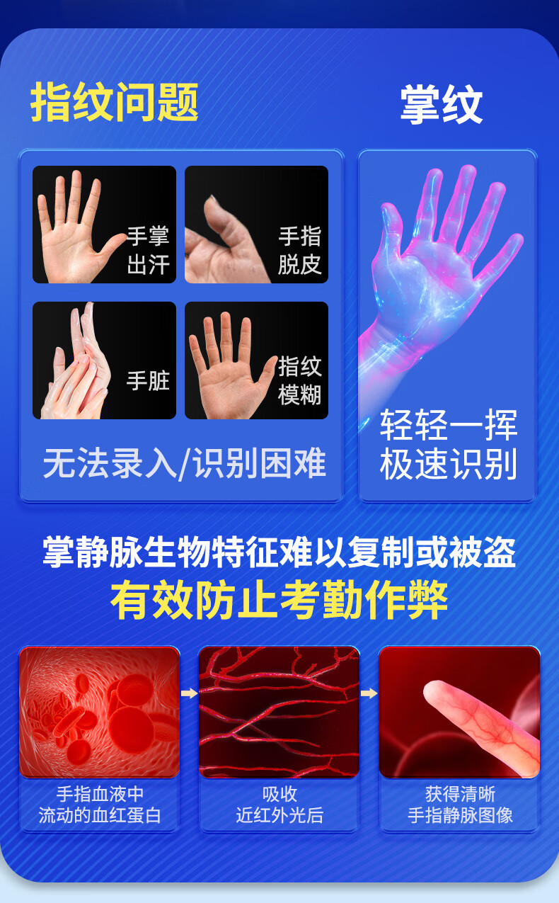 得力考勤机 打卡机掌静脉+人脸+指纹 免软件免网络 三步简单设置 自动生成报表 U盘导报表 销冠王33800