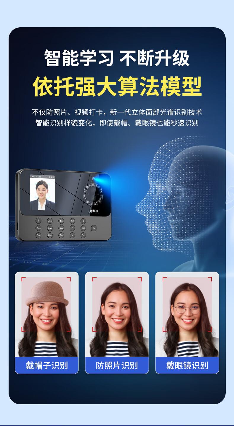 得力打卡考勤机人脸 指纹识别打卡机面部识别公司企业员工上下班签到机语音播报打卡考勤手机智能考勤 单机款人脸+指纹【无需网络 自动生成报表】
