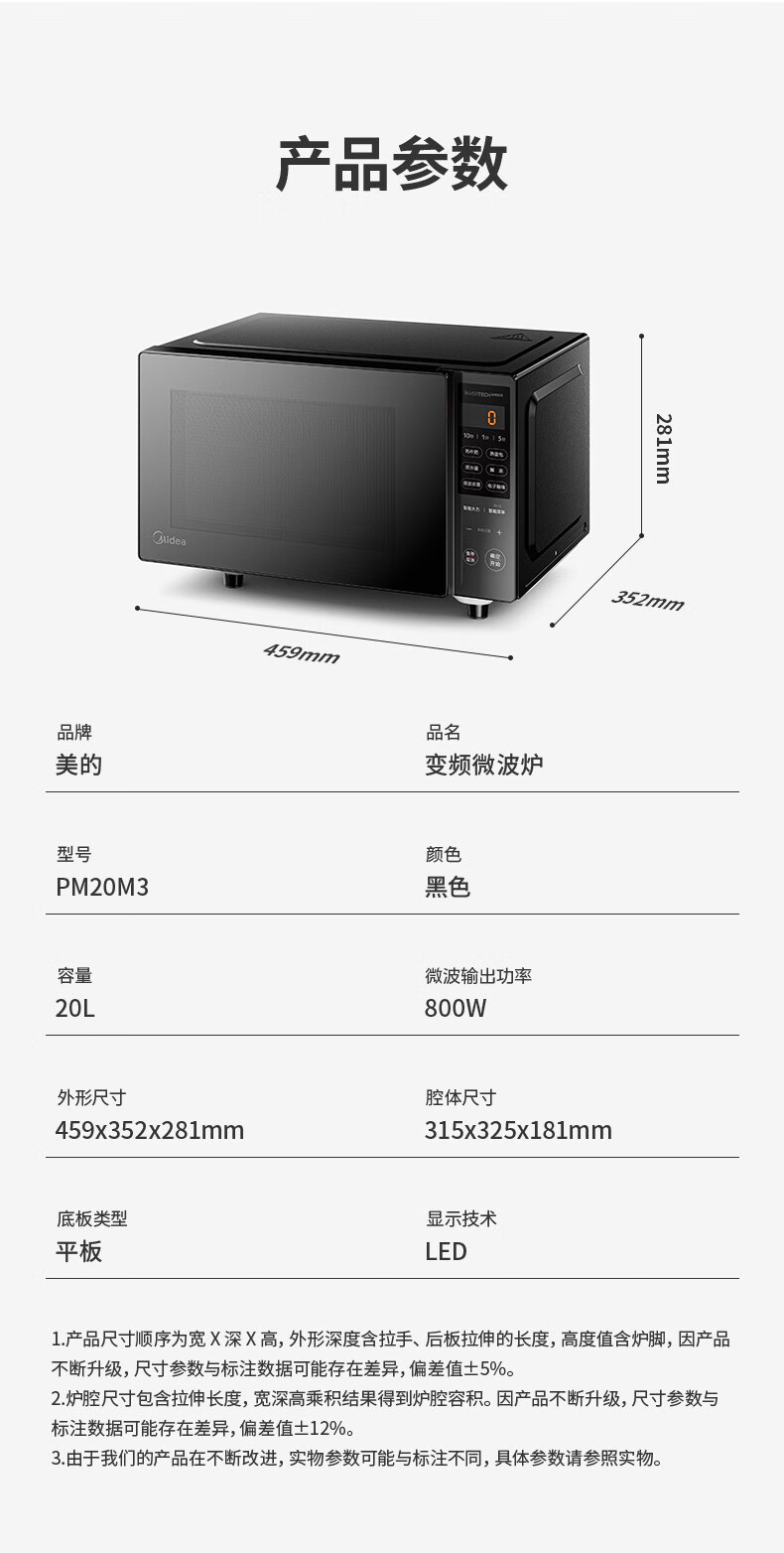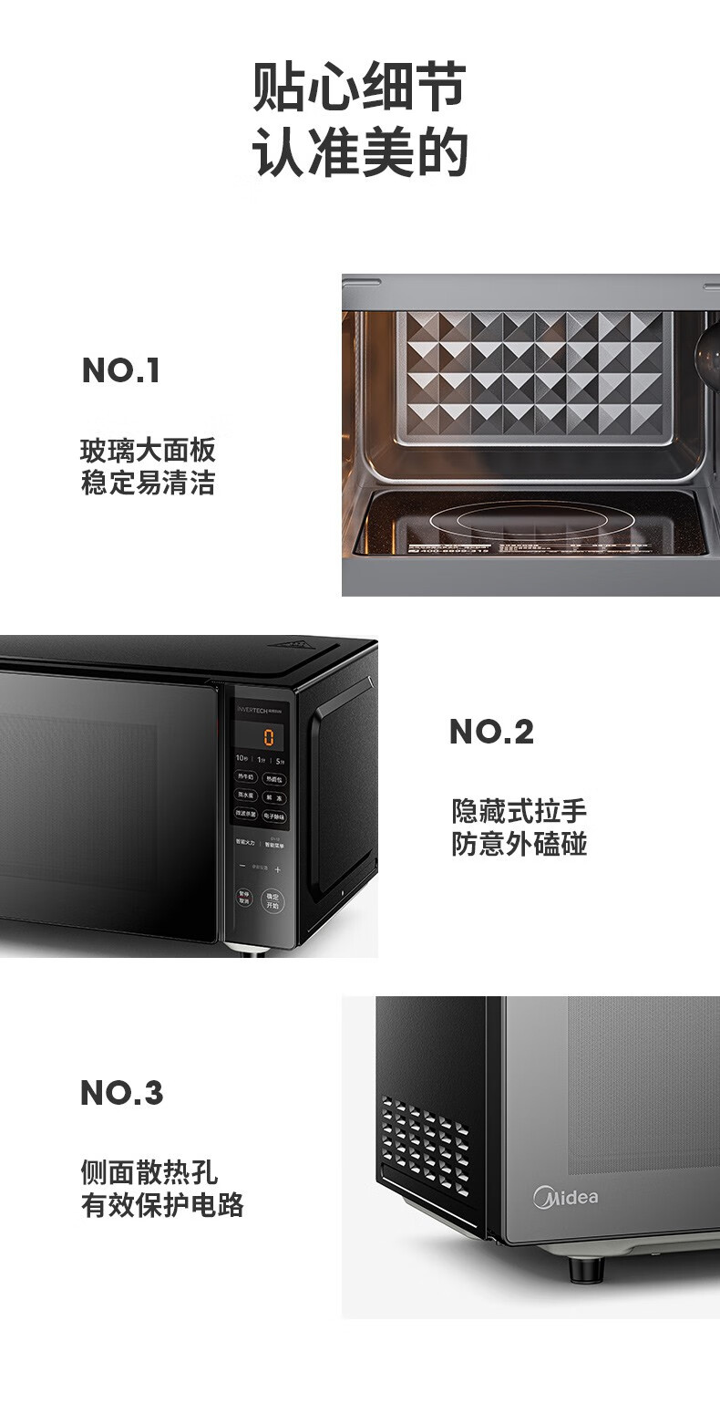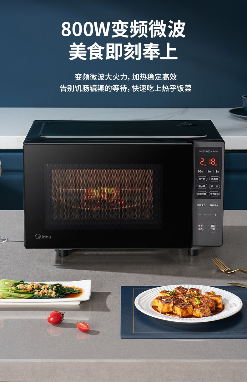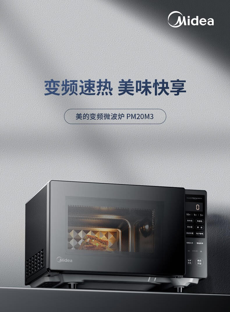 美的(Midea)家用变频微波炉 易清洁大平板底盘 智能菜单 20L小型迷你家用微波炉一级能效 易清洁内胆