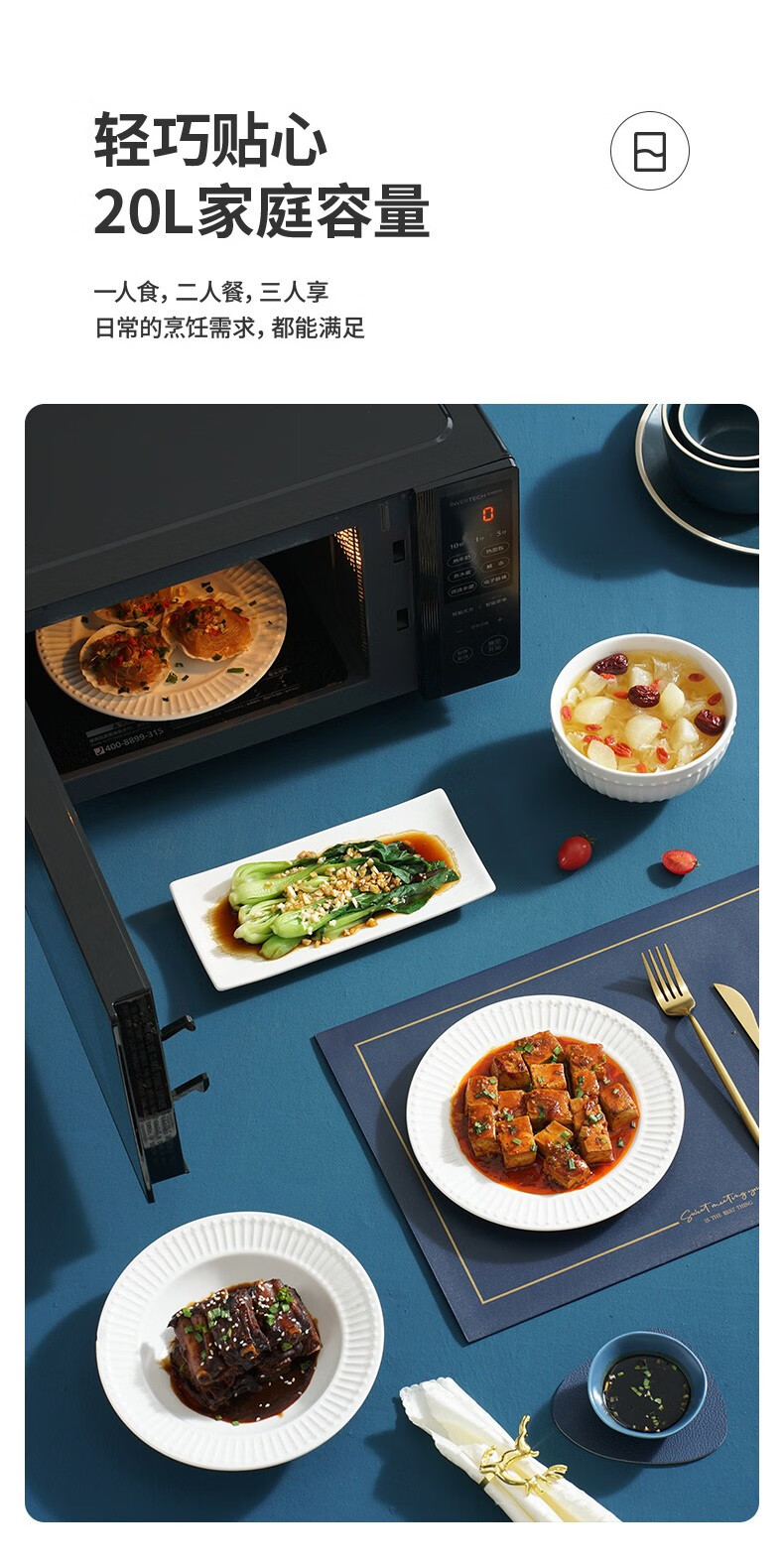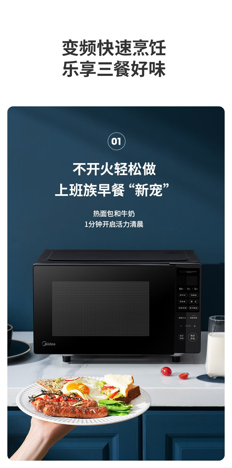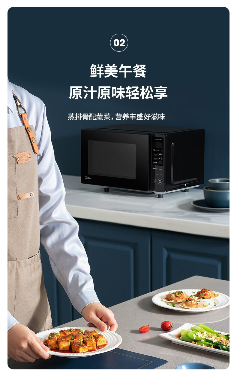 美的(Midea)家用变频微波炉 易清洁大平板底盘 智能菜单 20L小型迷你家用微波炉一级能效 易清洁内胆