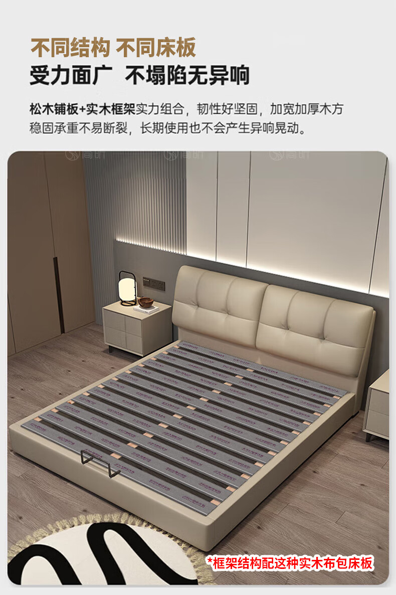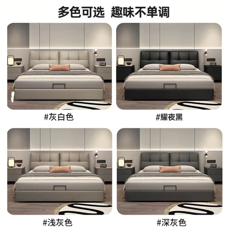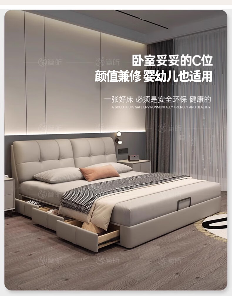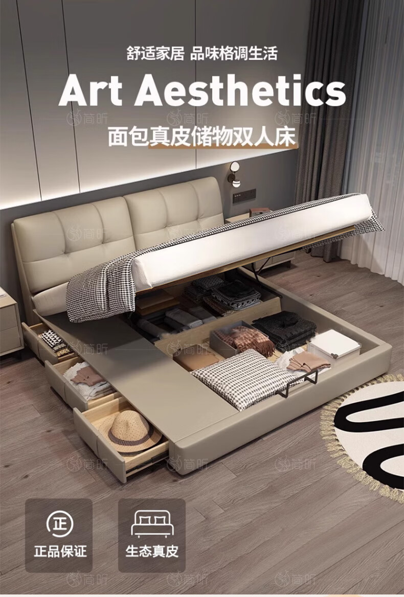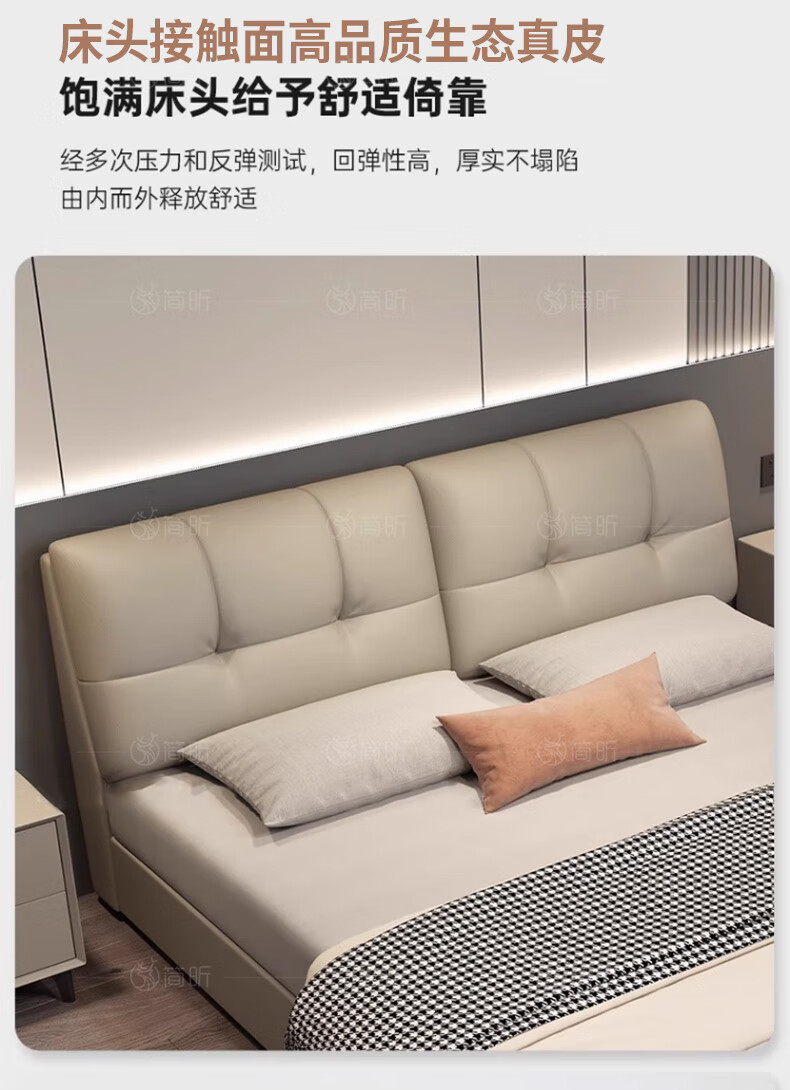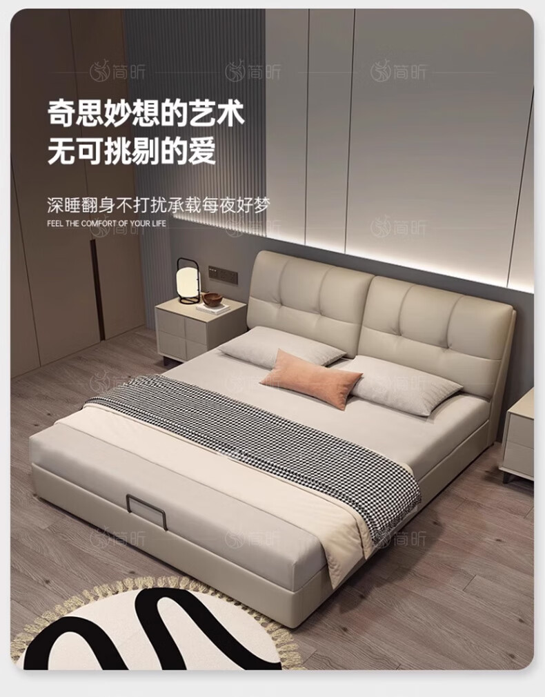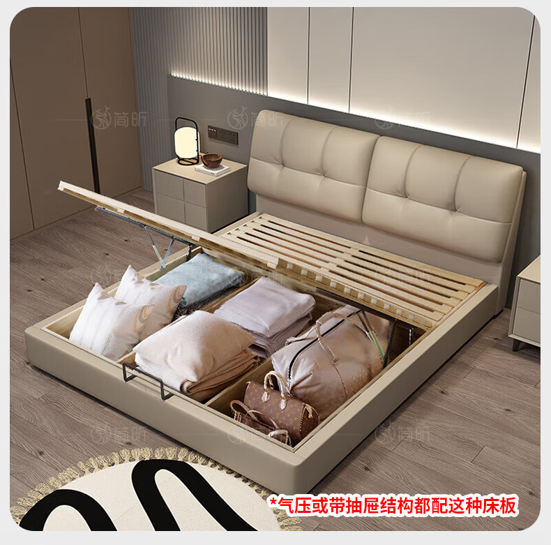 简昕真皮床1.8米x2米主卧大床双人床储物床现代轻奢卧室婚床皮床2388