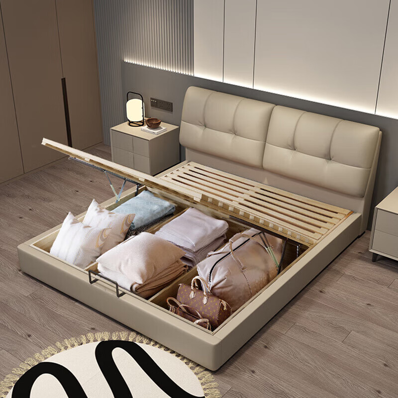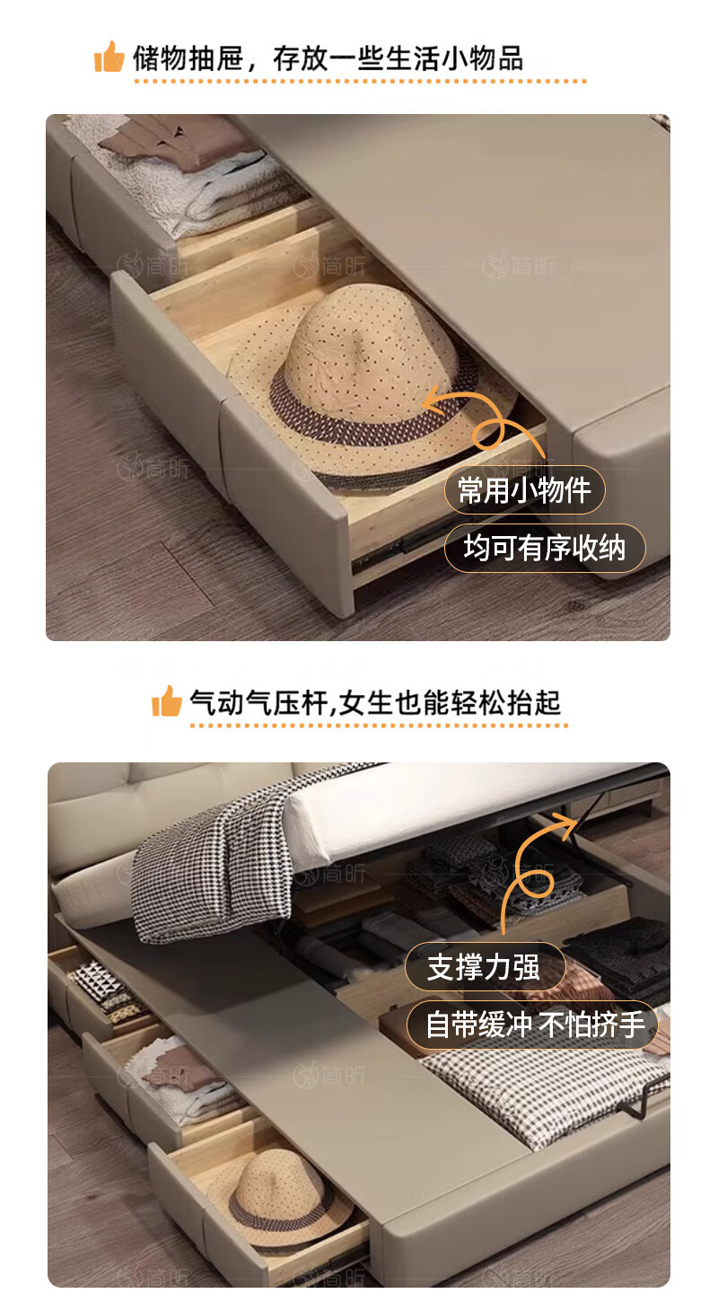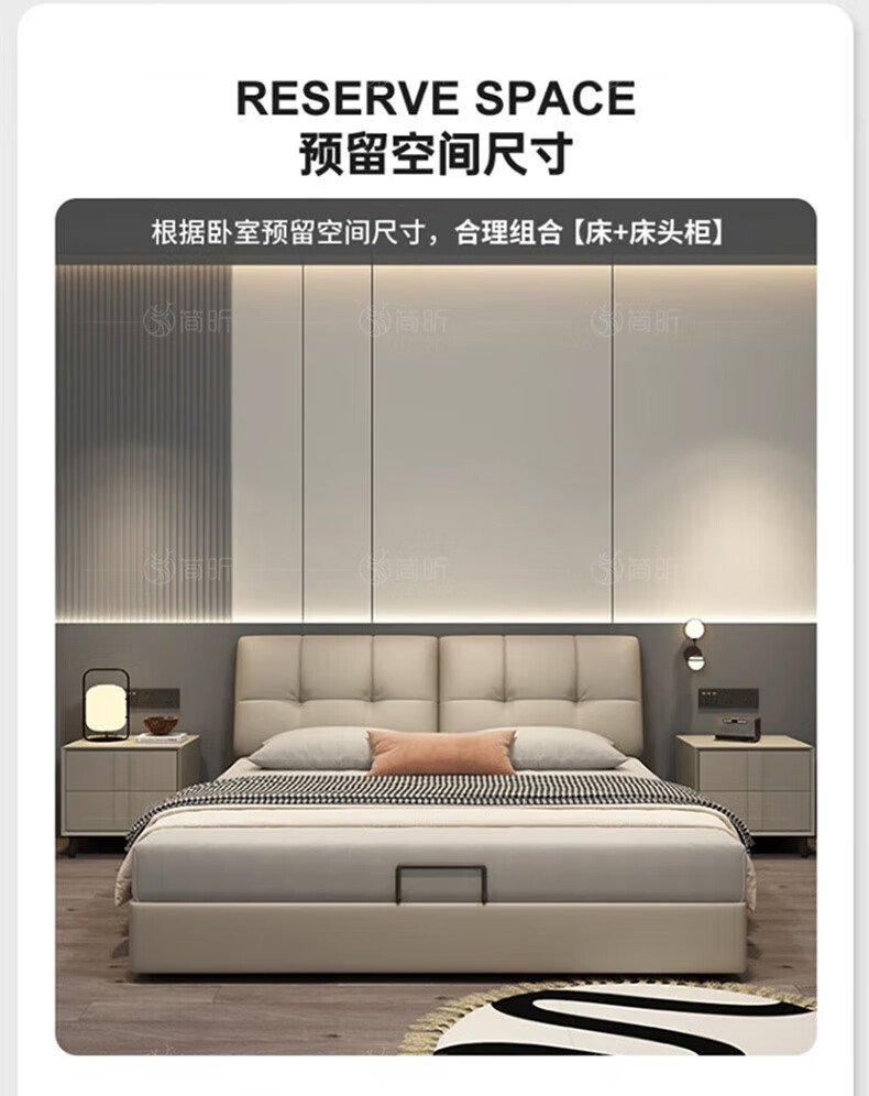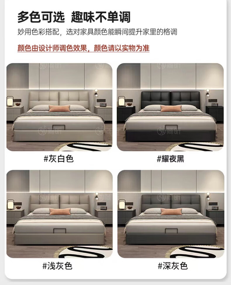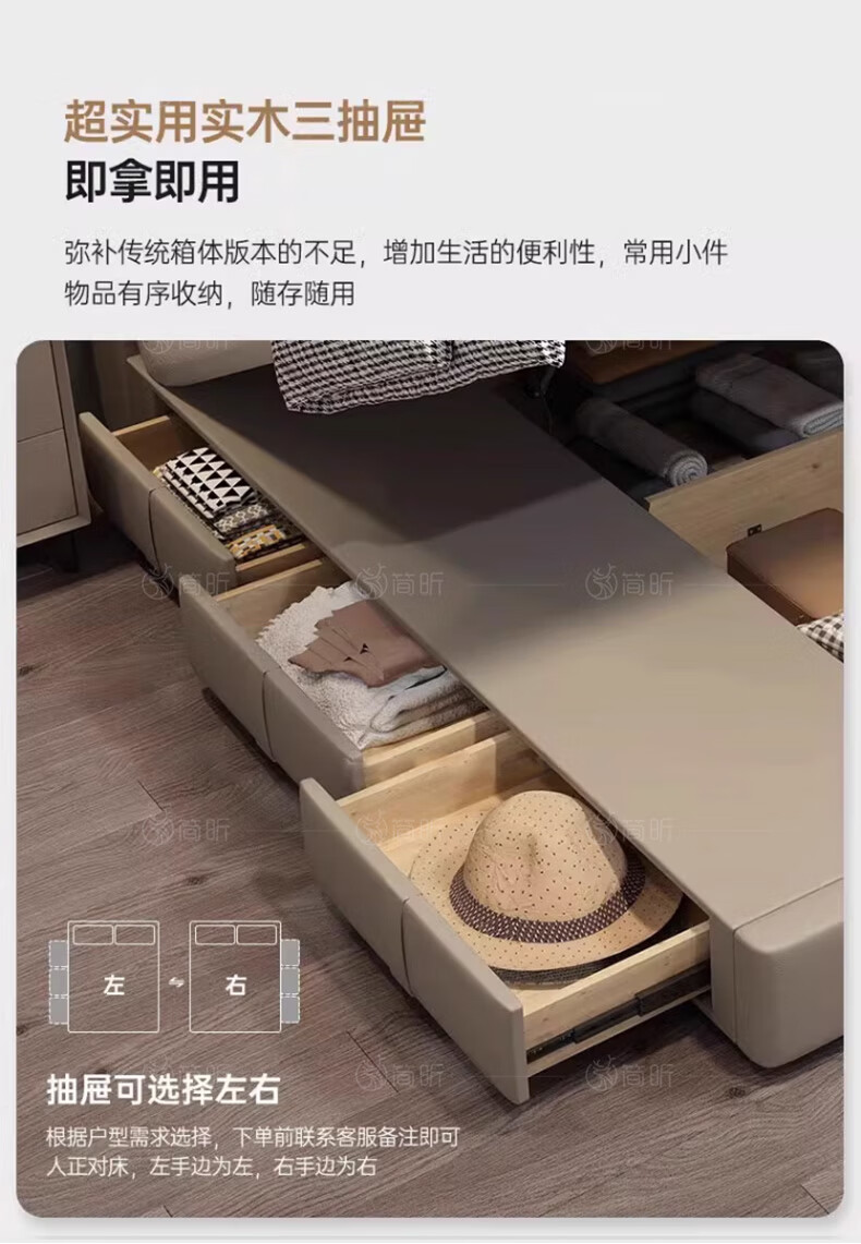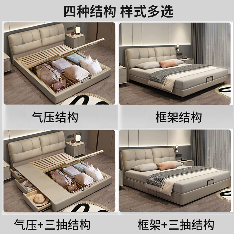 简昕真皮床1.8米x2米主卧大床双人床储物床现代轻奢卧室婚床皮床2388