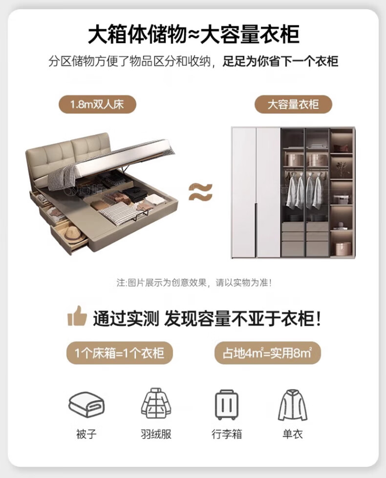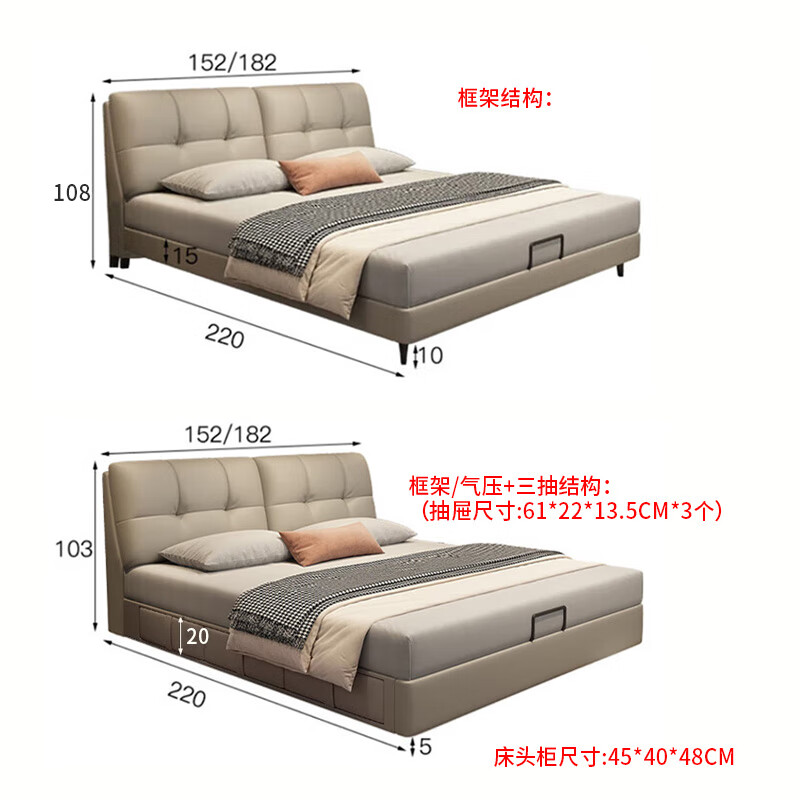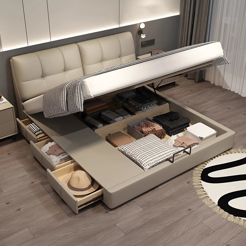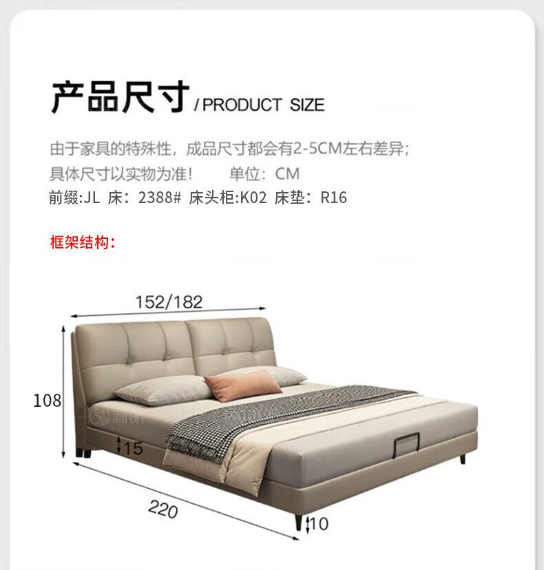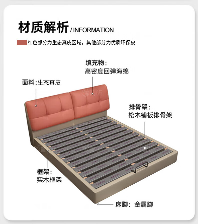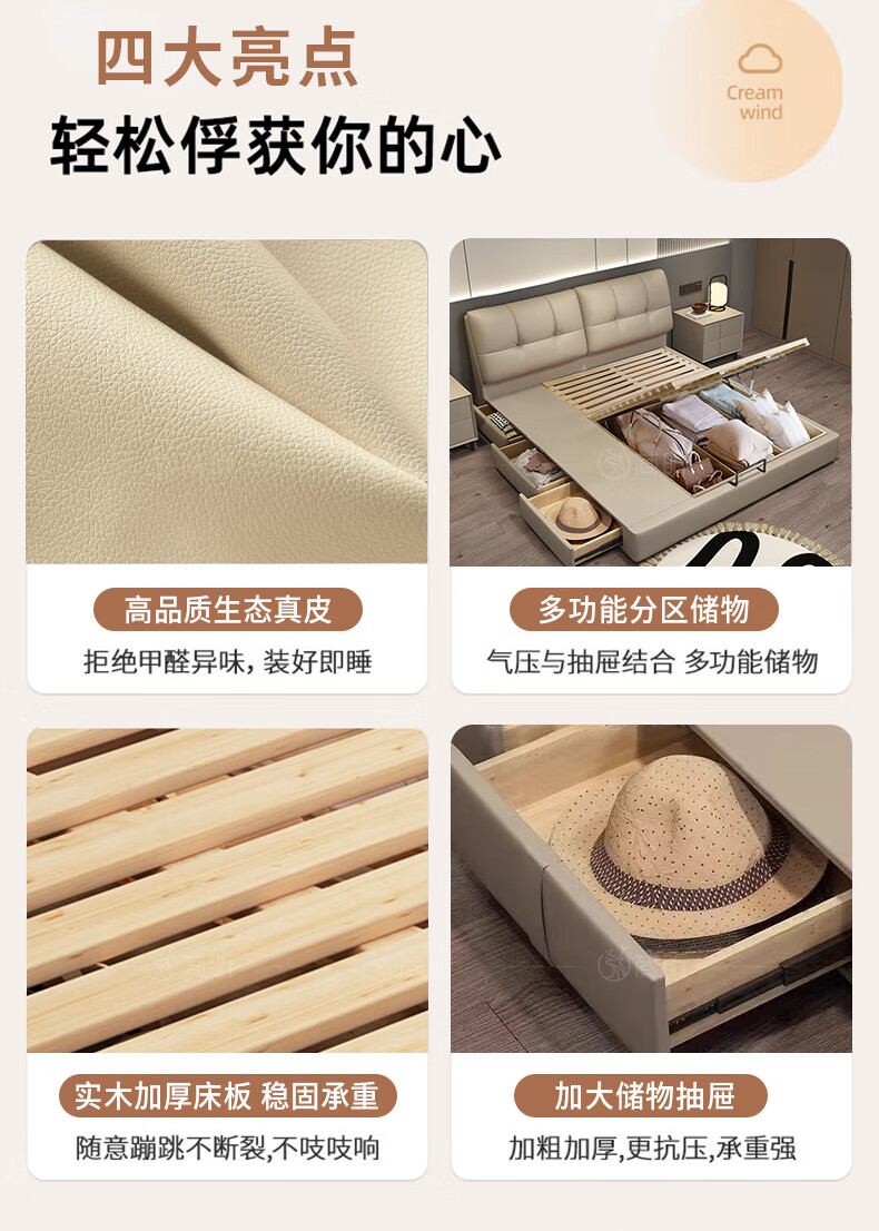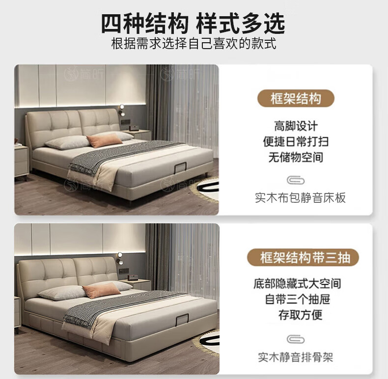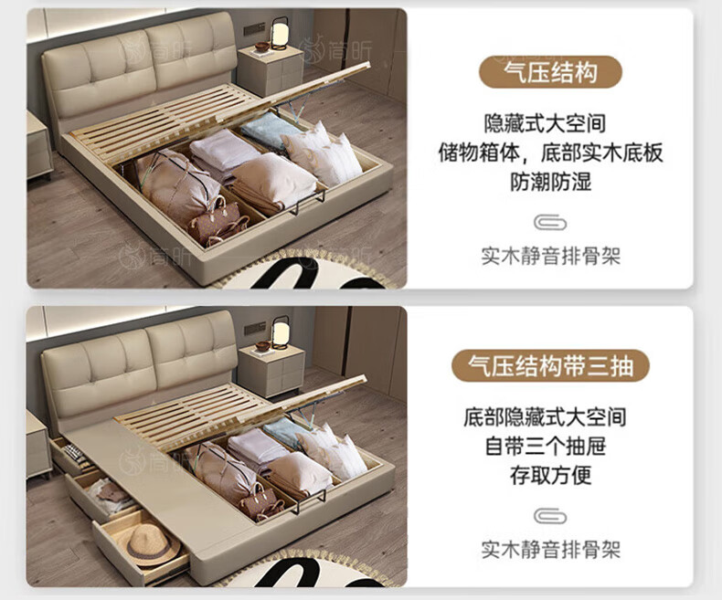 简昕真皮床1.8米x2米主卧大床双人床储物床现代轻奢卧室婚床皮床2388